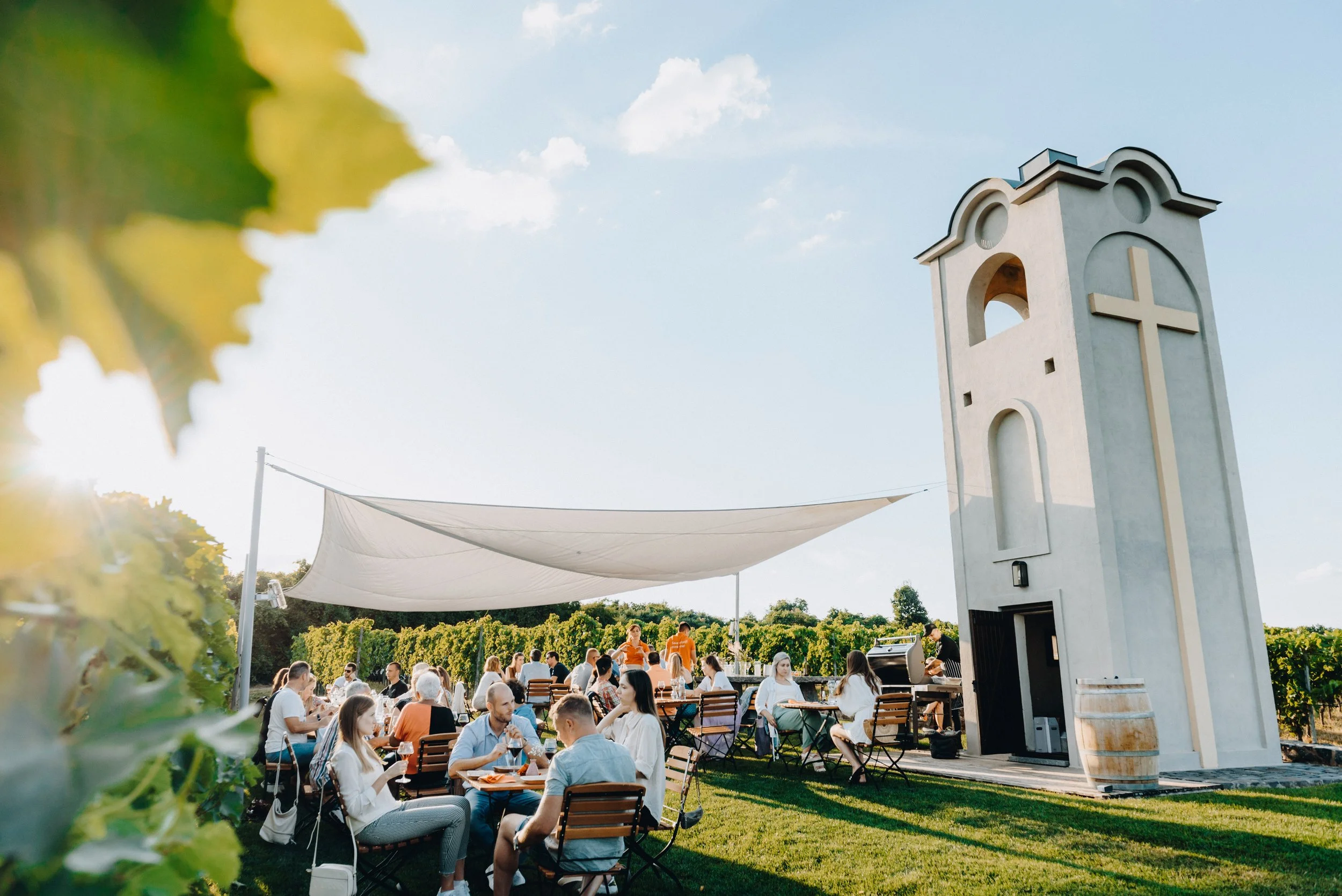 Namiesto projektora a kancelárskych stolov Vás čaká priestor medzi vinicami, chutné jedlo a víno, ktoré sa v okolitých viniciach urodilo.
